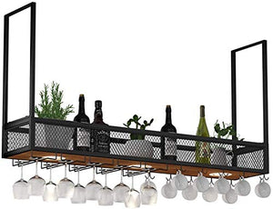 Yxsd Metal/Iron Wall Hanging Wine Rack With LED Spotlights, Solid Wood Bar Storage Shelf Industrial Wine Cabinet, Bottles,Goblet And Cup Ho...