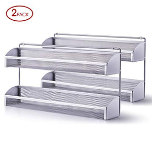 2 Pack- Simple Trending 2 Tier Spice Rack Organizer, Wall Mounted Spice Shelf Storage Holder for Kitchen Cabinet Pantry Door, Silver2 Pack-...