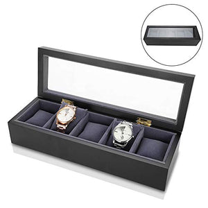 Watch Box Display Case, 5 Slot Glass Storage Box Organizer Watch Jewelry Display Box(Black)Watch Box Display Case, 5 Slot Glass Storage ...