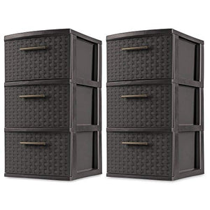 Sterilite 3 Drawer Wicker Weave Decorative Storage Tower, Espresso (2 Pack)