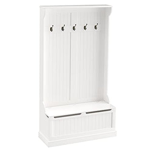 HOMCOM 71″ 3-in-1 Hall Tree Storage Bench and Coat Rack with 5 Steel Double Hooks, and Anti-Topple Anchor for Entryway, White