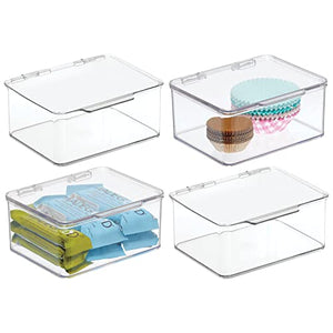mDesign Plastic Stackable Square Food Storage Bin Drawer Organizer with Secure Lid, Container Box for Organizer for Coffee, Tea, Packe...